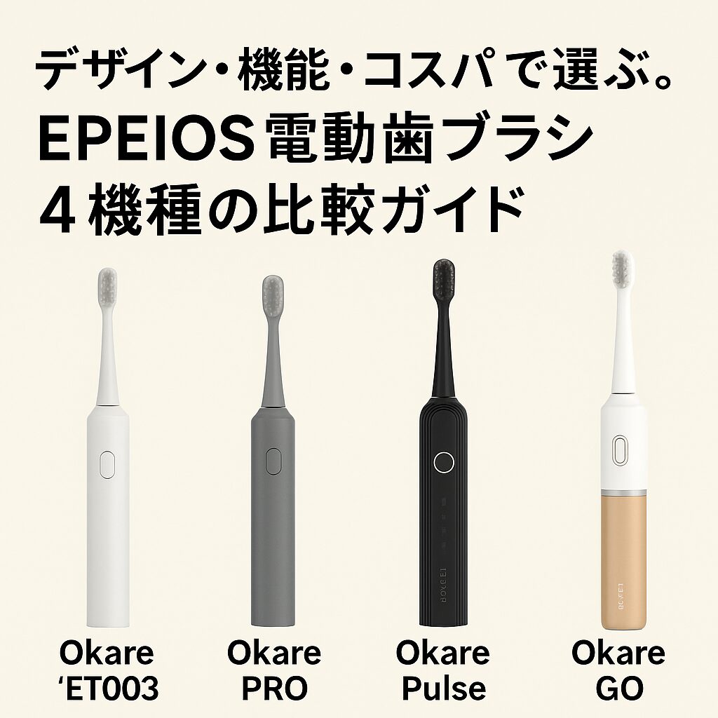 この記事では、EPEIOSの電動歯ブラシシリーズ「OKare(オーケア)」4モデルを比較し、